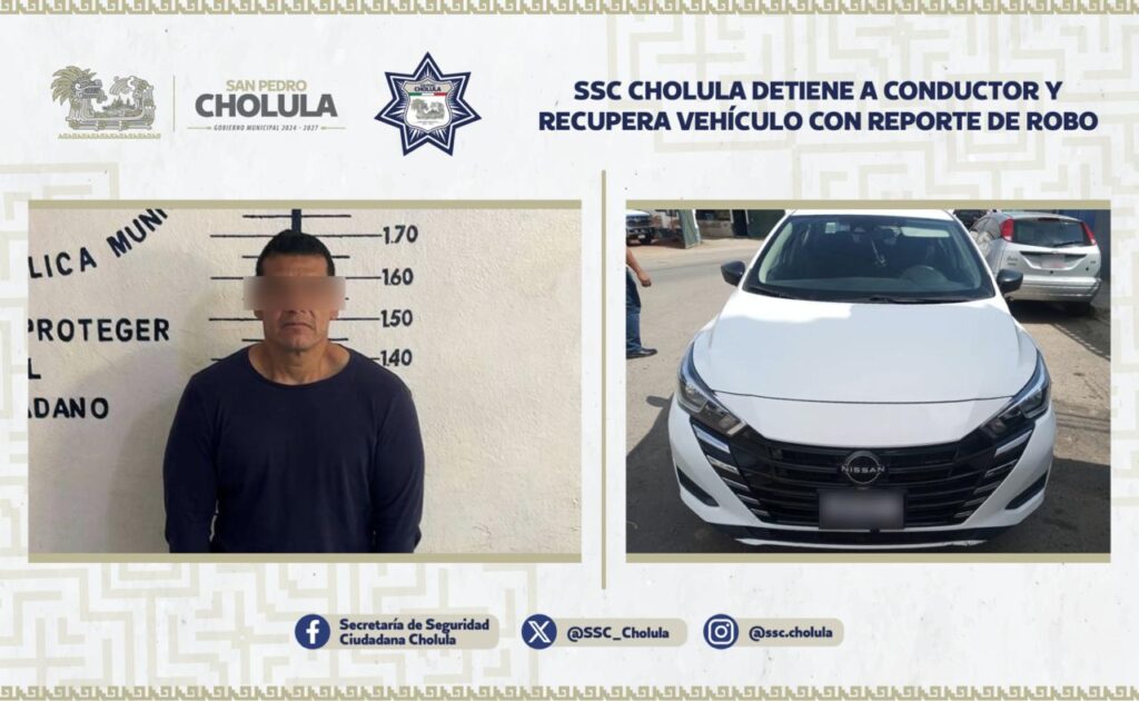 SSC Cholula detiene a conductor y recupera vehículo con reporte de robo