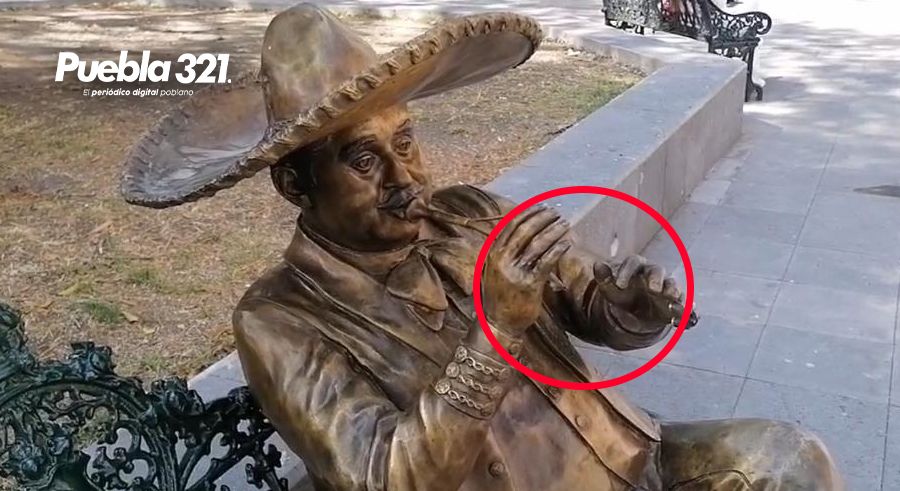 Roban trompeta de una estatua en el Parque de Santa Inés