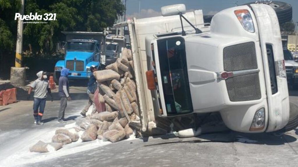 Vuelca camión cargado de cemento en Periférico Ecológico